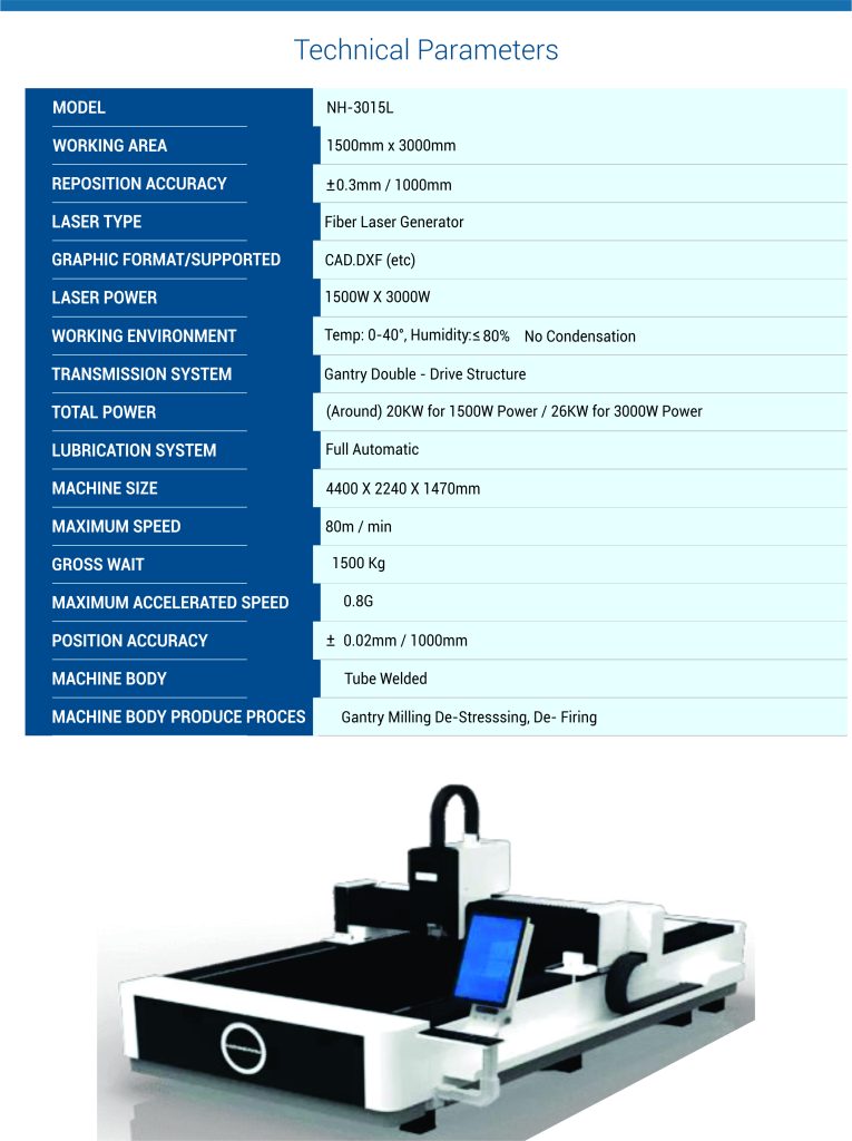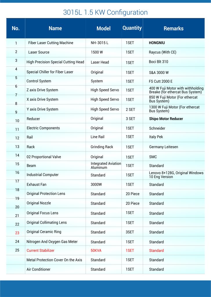 The Hongniu Laser 3015E is a cost-effective, single platform fiber laser cutting machine with a moderate footprint, suitable for cutting large volumes of sheet metal. It is designed to efficiently cut through a range of materials, including stainless steel, aluminum, brass, and copper, with a high degree of precision and accuracy. With its fast cutting speeds and low maintenance requirements, the 3015E is an ideal choice for customers looking to optimize their production processes and increase their output of high-volume products.